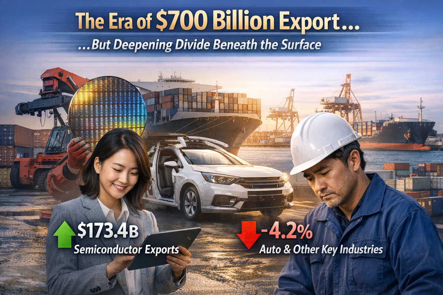 7000억 달러 시대, 그 이면의 양극화 2025년 우리나라 수출이 사상 처음으로 7000억 달러를 돌파하며 7097억 달러라는 역대 최대 실적을 달성했습니다. 전년 대비 3.8% 증가한 수치로, 한국은 세계에서 6번째로 연간 수출 7000억 달러를 달성한 국가가 되었습니다. 무역수지 역시 780억 달러 흑자를 기록하며 2017년 이후 최대 규모를 달성했죠. 하지만 이 놀라운 성과의 이면에는 극명한 수출 양극화 현상이 자리하고 있습니다. 반도체 수출은 AI 데이터센터향 견조한 수요가 지속되는 가운데 메모리반도체 고정가격도 큰 폭으로 상승하면서 역대 최대 실적인 1734억 달러를 기록한 반면, 자동차를 비롯한 다른 주력 산업들은 여러 대내외적 요인으로 어려움을 겪고 있습니다. 수출 양극화는 단순한 통계상의..